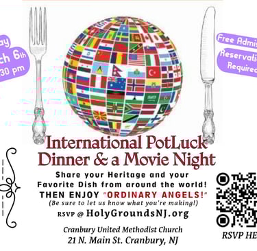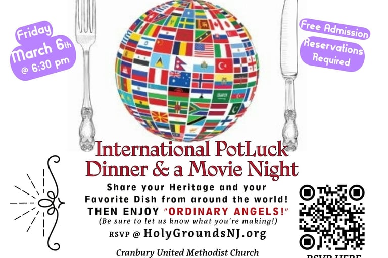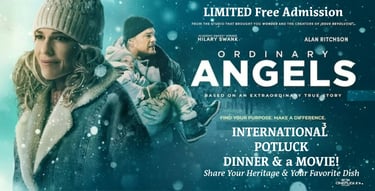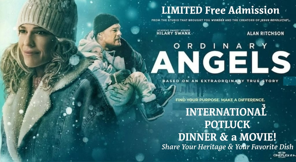 Come together to celebrate the wonderful world of food! Bring a dish to share that represents your heritage if you can. Then enjoy a night of fellowship, food and fun followed by an INCREDIBLE film of hope and redemption, "Ordinary Angels."